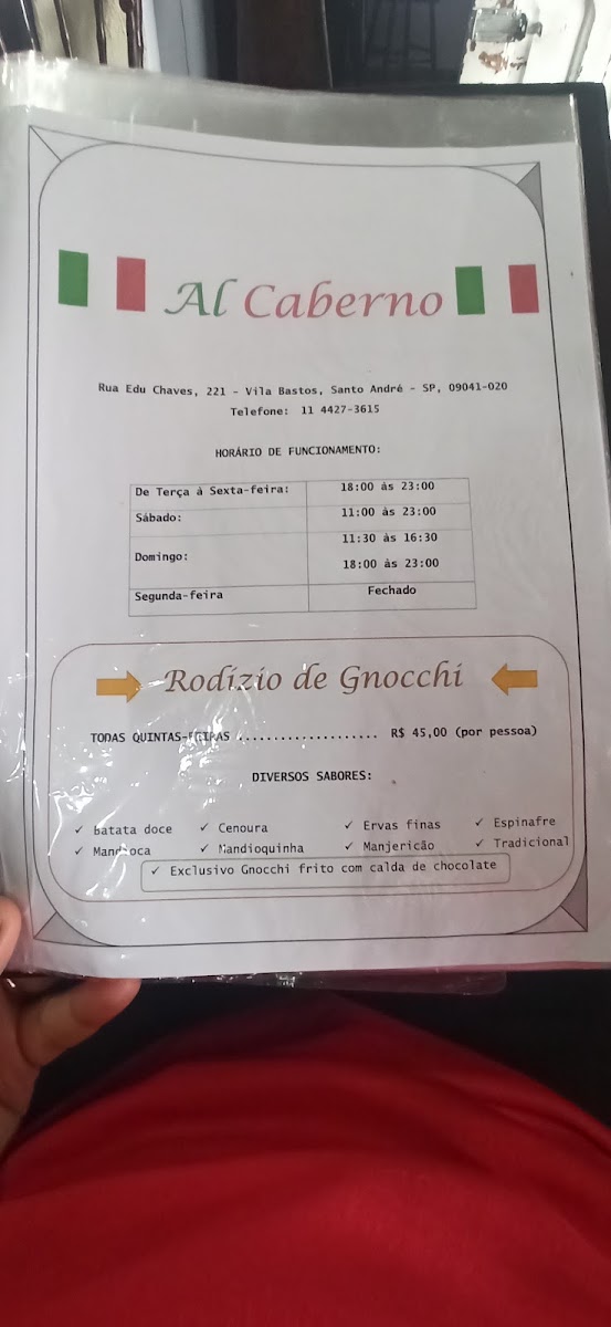 Cantina Al Caberno is a gem nestled in Jardim Bela Vista, Santo André, that brings authentic Italian flavors right to your doorstep. Specializing in traditional Italian cuisine and pizza delivery, this restaurant offers a menu that balances classic recipes with modern touches. Each pizza is crafted with fresh, high-quality ingredients, boasting a perfect thin crust that is both crispy and tender. The rich tomato sauces and carefully selected cheeses elevate every bite, embodying the essence of Italian culinary tradition.